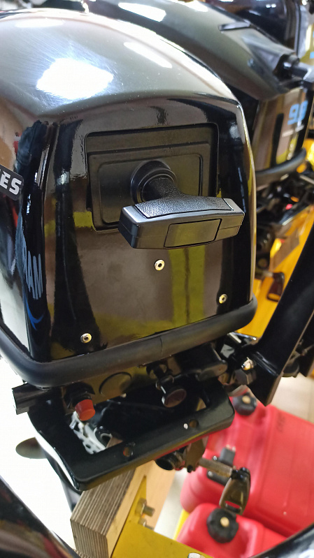 MP 40 AERTL: Лодочный мотор Marlin Outboards, двухтактный, 40 лошадиных сил, электрический запуск двигателя, дистанционное управление, гидропривод, длинная нога (дейдвуд).