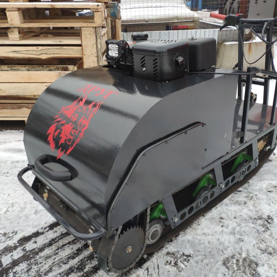 Мотособака весит 87 кг, а размер ее составляет 140 см в длину, 63 см в ширину и 76 см в высоту. Модель оснащена гусеницей шириной 260 мм. Гусеница в сочетании с катковой подвеской способна проходить спокойно по льду и даже по территории без снега.