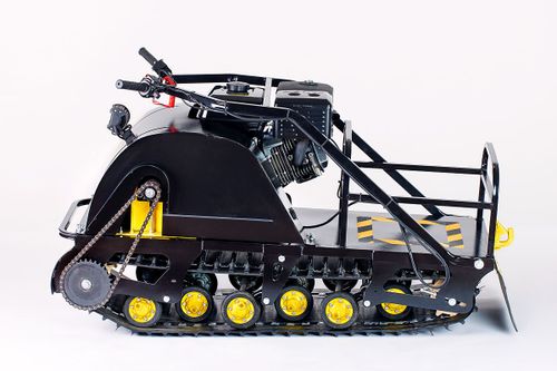 Мотособака весит всего 122 кг, а размер ее составляет 144 см в длину, 52 см в ширину и 80 см в длину. Благодаря своей легкости и компактности, мотобуксировщик способен маневрировать и проходить по рыхлой почве. К тому же мотобукс оснащен катковой подвеской, которая сглаживает ход, обеспечивает устойчивость на неровной поверхности, смягчает удары и вибрации от дороги.