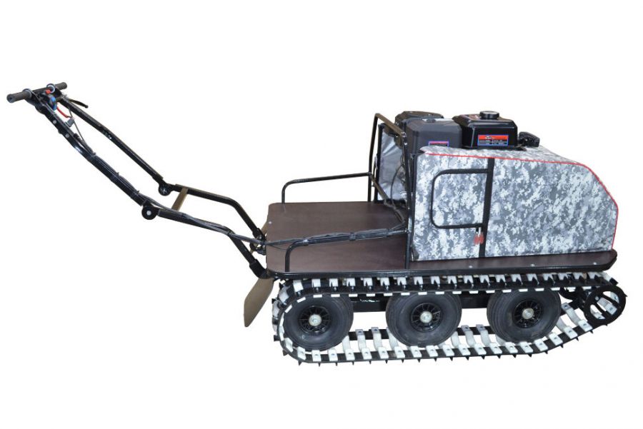 Мотособака весит 140 кг, а размер ее составляет 148 см в длину, 87 см в ширину и 90 см в высоту. Благодаря своей легкости и компактности, мотобуксировщик способен маневрировать и проходить по рыхлой и мягкой почве. К тому же мотобукс оснащен катковой подвеской, которая сглаживает ход, обеспечивает устойчивость на неровной поверхности, смягчает удары и вибрации от дороги.