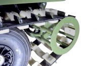 Мотособака весит 145 кг, а размер ее составляет 148 см в длину, 87 см в ширину и 90 см в высоту. Благодаря своей легкости и компактности, мотобуксировщик способен маневрировать и проходить по рыхлой и мягкой почве. К тому же мотобукс оснащен катковой подвеской, которая сглаживает ход, обеспечивает устойчивость на неровной поверхности, смягчает удары и вибрации от дороги.
