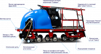 Мотособака весит 110 кг, а размер ее составляет 153 см в длину, 59 см в ширину и 84 см в высоту. Благодаря своей легкости и компактности, мотобуксировщик может маневрировать и проходить по рыхлой и мягкой почве. Кроме того, у мотобукса есть катковая подвеска, которая улучшает ход, обеспечивает устойчивость на неровной поверхности, а также смягчает удары и вибрации от дороги.