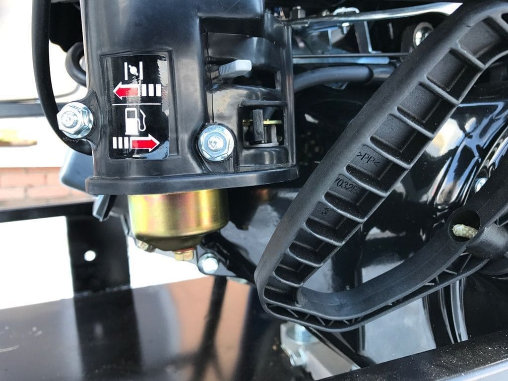 Увеличенный угол атаки позволяет с легкостью преодолевать глубокие снежные заносы. На ведущем валу мотобуксировщика установлены самоцентрующие подшипники. Смазка подшипника производиться без разборки ведущего вала и снят. Крепление руля вынесено выше платформы, что значительно повышает управляемость мотобуксировщика. Ширина руля средняя, что облегчает управление мотобуксировщиком в болоте и лесу. На мотобуксировщике установлен фаркоп. Это упрощает процесс крепления саней к мотобуксировщику, в отличии от стандартных прицепных устройств, где используется обычный рымбол.