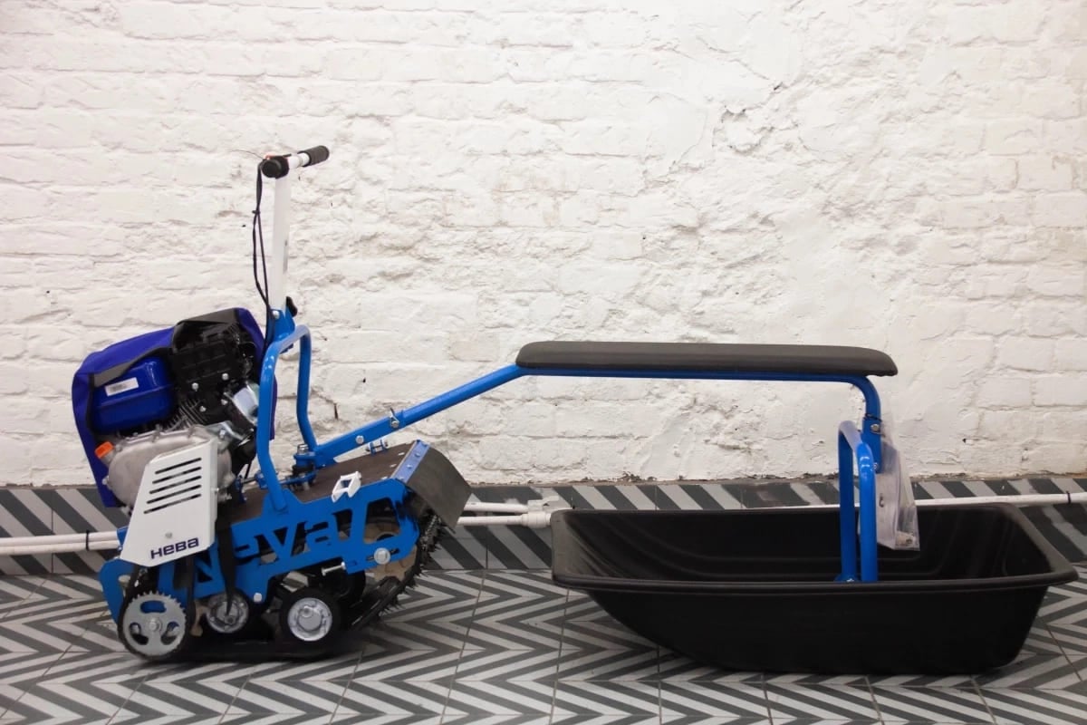 Большинство опытных райдеров выделяют в этой модели катки, которые прикручиваются по внутренней стороне гусеницы. Благодаря ей мотобуксировщик отличается мягким ходом и уверенностью на льду или укатанной дороге. При этой всей уникальности и универсальности устройство легко помещается в багажник любого компактного хэтчбека, а следовательно, для авто вообще не проблема.