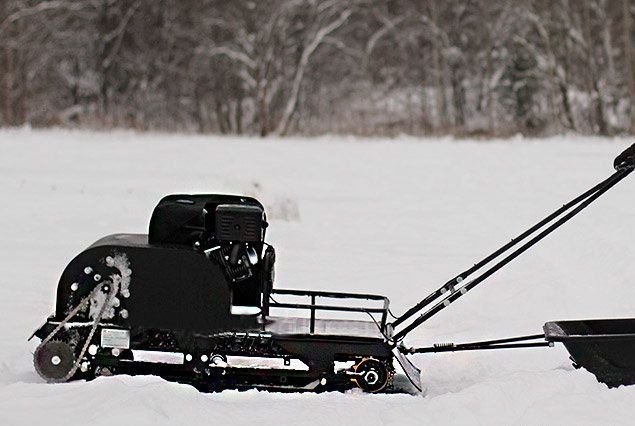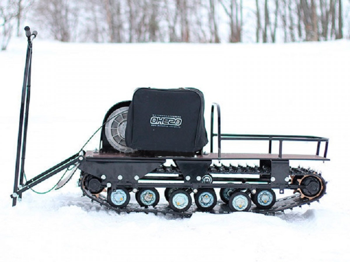 Катковая подвеска упрощена и не дает гусенице забиваться снегом. Также на данном мотобуксировщике установлены обрезиненные катки с сальниками и ведомая звезда, которая самоочищается от снега и льда. На мотобуксировщике также установлена настраиваемая рукоятка, регулируемая по высоте в зависимости от роста водителя.