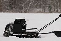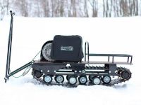 Буксировщик оснащен 4-х тактным двигателем мощностью 15 л. с., достигающий скорость до 40 км/ч. Это позволяет быстро перевозить груз до 300 кг в санях и на специальной багажной площадке мотобуксировщика. Объем двигателя составляет 420 кубов.